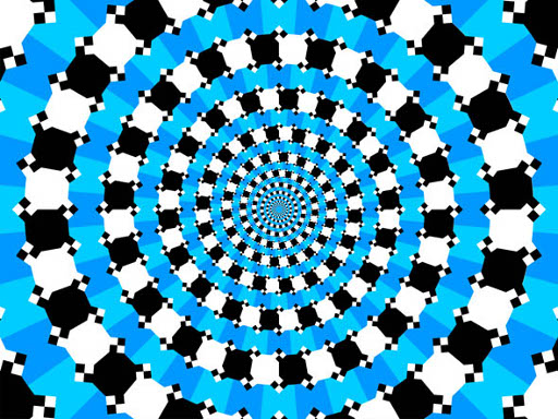 L'année dernière je vous avait montré une illusion avec des spirales de couleur. Les illusions d'optique dont je vous parle aujourd'hui semblent aussi des spirales. Mais elles sont des fausses spirales, des cercles concentriques qui trompent vos yeux.