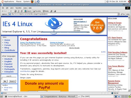 Pour finir, je vous laisse ici une capture d'écran d'IE en train de tourner sur mon bureau GNOME :