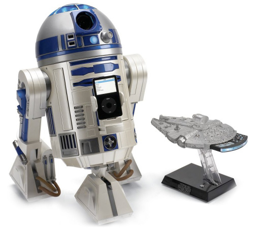 Et oui, vous avez compris, cet adorable R2-D2, complet dans tous ces détails, est un vidéo-projecteur avec lecteur DVD, connecteur pour iPod, des entrées numériques et analogiques et même une télécommande en forme de Millennium Falcon.